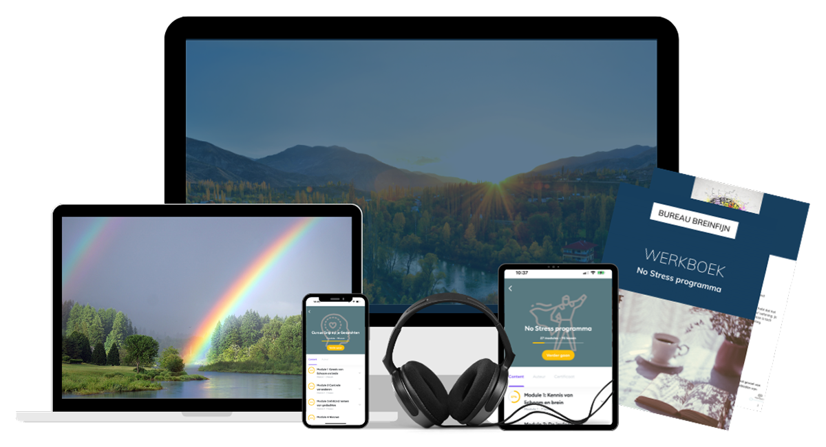 Investeer in je eigen gezondheid met de Breinfijn Cursusbundel. Ontvang toegang tot alle cursussen van Bureau Breinfijn, met effectieve technieken om angst, paniek en stress te verminderen, lichamelijke spanningsklachten op te lossen en je beter in je vel te voelen.