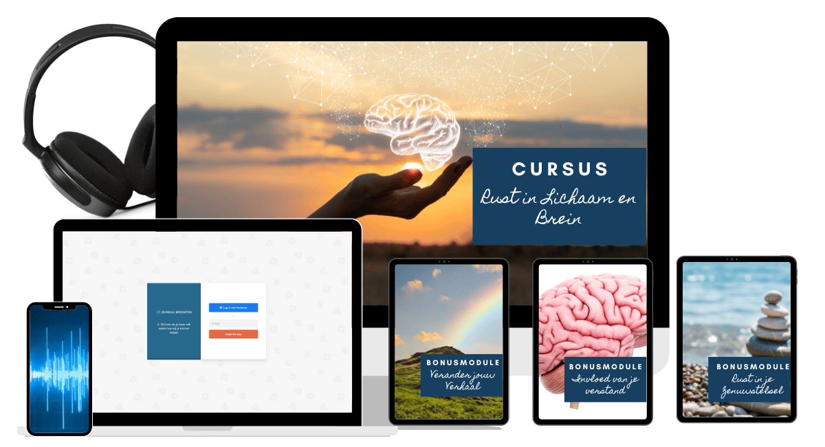 Bij deze cursus zit als bonus de hypnose audio ‘Rust in lichaam en brein’, wat als krachtige samenwerking fungeert tussen wat je verstandelijk kunt doen om de klachten te verminderen, als ook in je onderbewustzijn kunt veranderen.